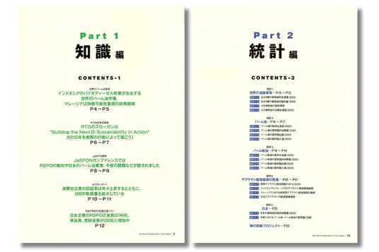 パーム油白書は、パーム油に関する基礎知識から国際情勢、日本市場の動向、企業の対応状況などを整理した年次のレポートです。データと現場の議論をもとに作成しており、2011年から毎年発行を続けています。
