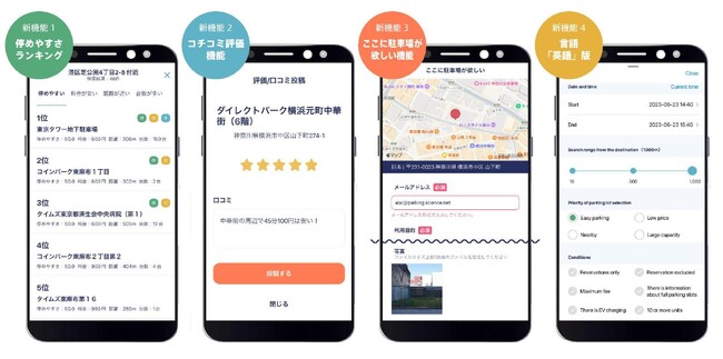 →駐車場への口コミ評価を☆1~5で投稿できる機能を実装致します。