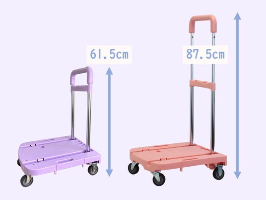 Fleurry Carry(フルーリーキャリー)は約39×44cmのコンパクトな台車です。外でのゴミ出しや、室内での荷物の移動など、日常生活の様々なシーンで活躍します。伸縮式で高さを変えられるハンドルは、折りたたむことが可能。折り畳んだ状態で自立するので、収納時もとってもコンパクトで場所を取りません。エラストマーのスムーズなキャスターで重量物の移動も簡単に行うことができます。