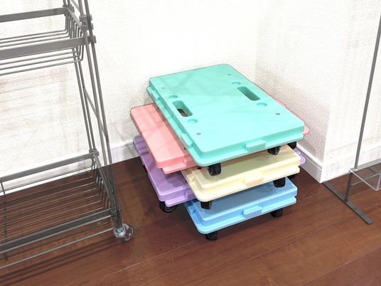 使わない時にはスタッキングという積み重ねられる機能がついているので、複数枚あっても邪魔になりません。エラストマーのスムーズなフローリングに優しいキャスターで、重量物の移動も簡単に行うことができます。