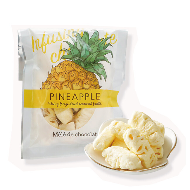 【新商品】フリーズドライしたパイナップルにホワイトチョコレートをぎゅっと浸み込ませました。