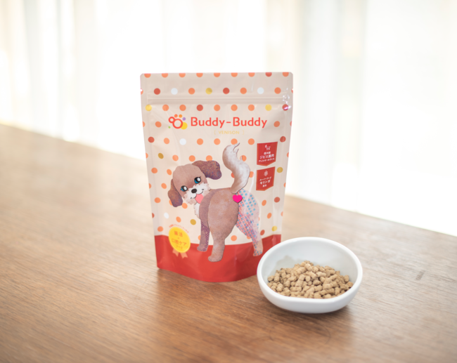 さらに、「335.9kcal」という低カロリーを実現。ダイエットや脂質が気になる子でも、気にせず活用していただけます。毎日1杯の食習慣で、愛犬の体を守ります。1袋80g、2,180円(税込)で、バディバディオンラインストアにて販売。