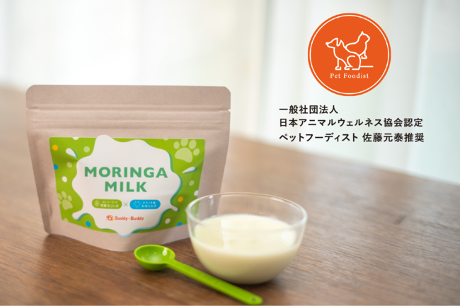 日本アニマルウェルネス協会が認定する“ペットの食事の専門家”も、毎日の1杯で、水分補給と栄養補給を支え、病気にならない体を叶える「バディバディ モリンガミルク」を推奨しています。