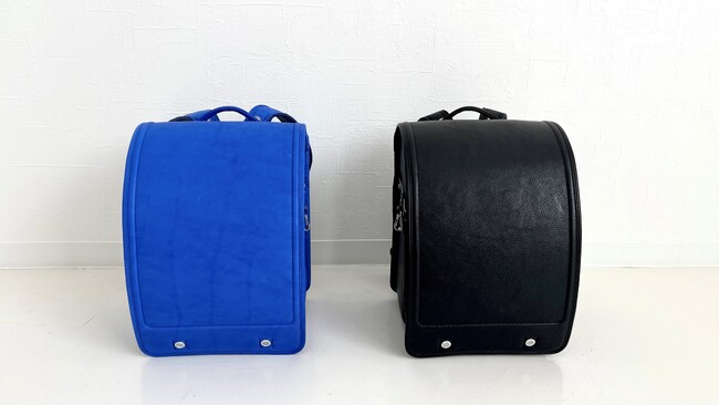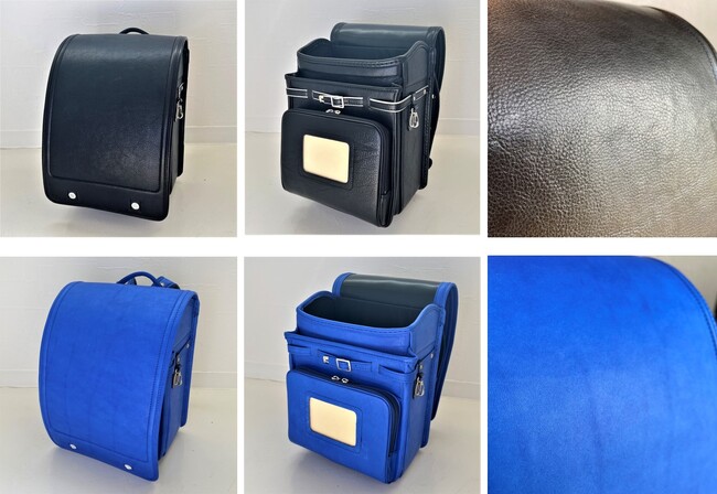 今回のプロトタイプは、メゾンエオブジェでフランス人バイヤーたちから実際に好評を得た神戸レザの皮革「UZU」 (ブラック) と「TSUYU」(ブルー)、そして、全国の小学生に大人気の「フィットちゃん」ランドセルをベースに使用し、2タイプを製作。プロトタイプながらも、素材(皮革)やデザイン、そして機能性を両立させたランドセルとなっています。