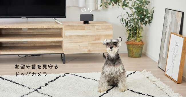 カメラがお留守番中の愛犬の様子をとらえ、1時間に1回「ペット時報」が届く