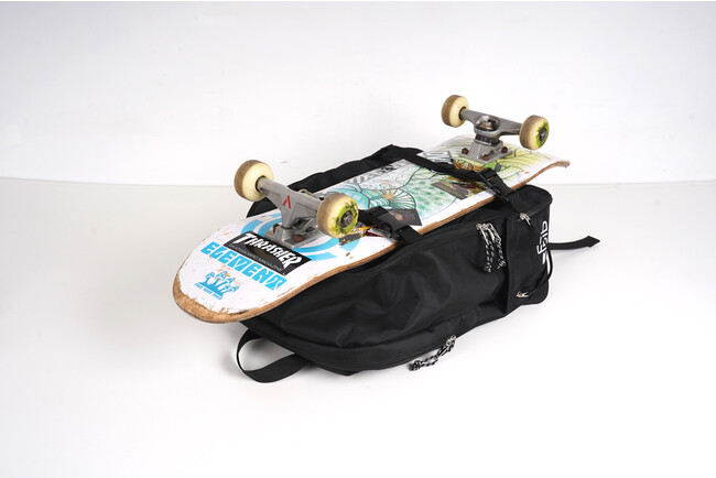 バッグの生地には1680デニールの高機能性ファブリックを採用し、摩擦やスレに強く、スケーターには嬉しい頑丈さと耐久性を実現。