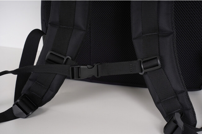 ・肩への負荷軽減のためクッション性のある素材と蒸れ防止のメッシュ素材を使用したショルダーストラップ