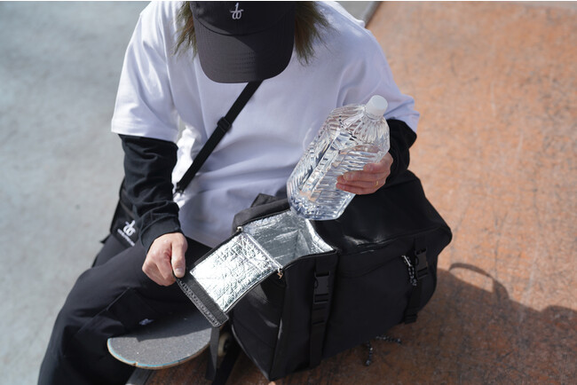 バッグの底面を保冷ルームにし、凍らせたペットボトルを入れることを可能にしました。