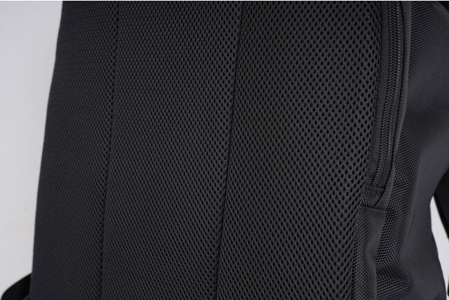 蒸れ防止のため、ショルダーと背中に当たる部分には通気性の良いメッシュを使用しました。