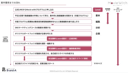 株式会社B-and-A(本社:愛媛県松山市/代表取締役社長 CEO 新居総一郎、以下「B-and-A」)は、動画編集者を目指す方々に向けた新しいプログラム「Movie with」を開始いたします。