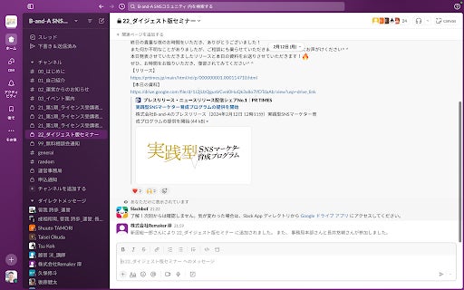 プログラム受講後も動画教材を実践する中で、わからないことがあればSlackで現役動画編集者に質問を行うことも可能です。