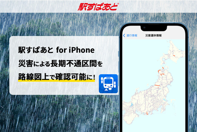 経路検索サービス「駅すぱあと」を提供する株式会社ヴァル研究所(本社:東京都杉並区、代表取締役:菊池 宗史)は2023年2月13日(月)より、スマートフォン版アプリ「駅すぱあと for iPhone」にて、「災害運休路線図」機能を提供します。