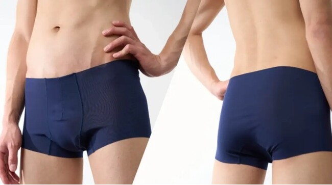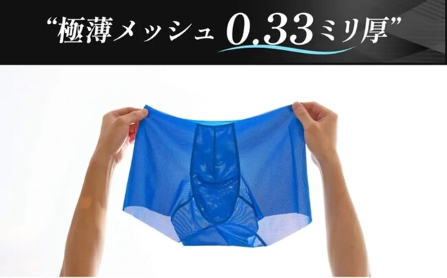 国内では希少な編機を使い、極細ナイロンとポリウレタンの組み合わせで一般的なボクサーパンツより34%も薄い、厚み0.33mmの素材となっています。