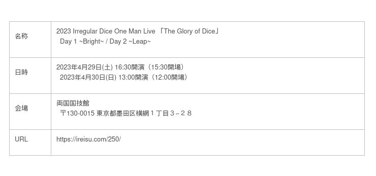 「いれいす」の過去最大規模の2daysライブ!2023 Irregular Dice One Man Live 「The Glory of Dice」~2023年4月29日(土)、30日(日)の2日間に渡り、両国国技館にて開催!~