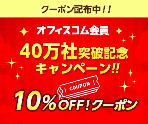 オフィスコムでは会員社数40万社突破を記念して、2024年9月26日(木)10時から10月31日(木)18時00分まで本店サイト内にて、『EC本店サイト40万会員突破記念キャンペーン』を開催しております。