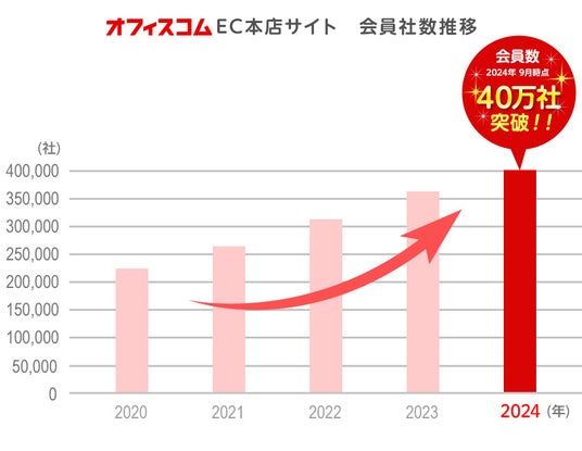 オフィス家具の製造・販売から内装工事までをトータルに手掛けるオフィスコム株式会社(本社:東京都千代田区、代表取締役社長:室木 剛、以下 オフィスコム)は、2024年9月にEC本店サイトの会員社数が40万社を突破いたしました。