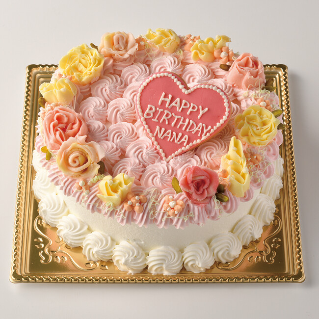 ナナちゃんの誕生日を祝う、花をあしらった特別なデコレーションケーキ。
