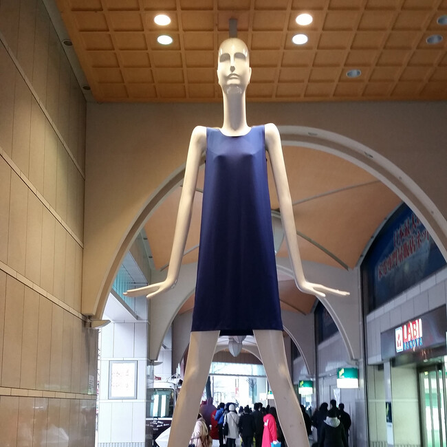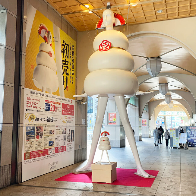 1972年にヤングを対象として名鉄百貨店セブン館(2006年より「ヤング館」、2011年閉館)がオープン。1973年、一周年を記念して何かシンボルになるものを作ろうと、いろいろな案を出し合いました。そして百貨店と切っても切れない関係のものはないかと探しているときに東京で行われたマネキンの展示会でインパクトのある大きな人形を見つけそれをマスコットにすることにしました。