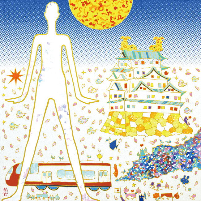 愛知県出身の画家、古家野 雄紀氏が描くナナちゃんと名鉄電車。