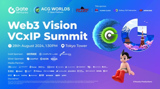 ACGWORLDS株式会社(本社:東京都渋谷区、代表:青木 一世)が運営するWeb3.0サービスACG WORLDSは、Gate Ventures(Gate.ioベンチャーキャピタル部門)と、2024年8月28日(水)14:00から東京タワーの「RED Sky Stadium」及び、高さ150mメインデッキ内の「Club333」にてWeb3.0イベント「Web3 Vision VC×IP Summit」を共同開催いたします。