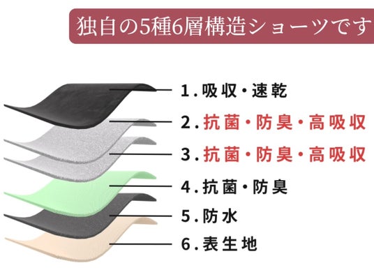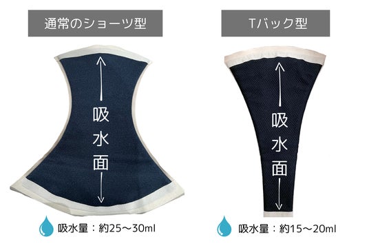 新しいショーツ型では吸水面が増え、Tバック型よりも約1.6倍の吸水量を実現。吸水面の厚さ『3mm』という驚くほどの薄さながら、6層構造の特殊なシートで漏れの不安をゼロに。