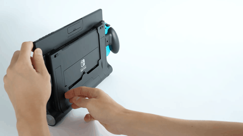 モニター自体にswitch本体の取り付け口とjoy-conの取り付け口を設けることにより携帯モードの感覚でプレイが可能。