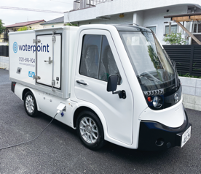 平時から「ウォーターポイント八王子」ではミネラルウォーターの配送に、二酸化炭素を排出しない電気自動車を用いています。この電気自動車のバッテリーが災害時には、蓄電池の役割を果たします。