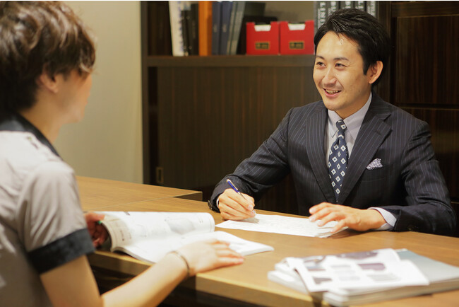 お手持ちのスーツやジャケットとのコーディネートを、ライフシーンに合わせてスタッフがご提案します。オーダーシャツのサンプルも用意していますので、イメージを共有しながら生地のセレクトからデザイン決めまでサポートいたします。初めての方でも安心です。