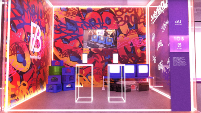 サービス正式提供に先駆け、本イベント期間中、人気ダンス&ボーカルユニット「BE:FIRST」の新曲「Boom Boom Back」の特別パフォーマンス映像「Boom Boom Back PLAYGROUND remix」をHz Shibuyaにて3月8日から12日の期間限定で特別展示します。Hz Shibuyaの一区画には、「Boom Boom Back」のミュージックビデオの舞台である2000年代の渋谷を彷彿とさせるアートグラフティが施された”マイルーム”が登場。ルーム内では、「Boom Boom Back」のここでしか観られない特別パフォーマンスが視聴できます。タッチパネルを指で操作するだけで、360度自由自在に視点や距離を調整でき、メンバーのパフォーマンスを様々な角度から楽しめ、いつものライブとはまた違った体験が可能です。