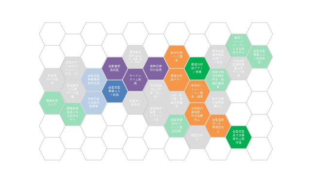 GAMで最初に取り組むテーマは、「コンフォーマル冷却金型」と「少量生産品」への金属積層造形の適用です。コンフォーマル冷却金型とは、形状に適応した冷却配管を内部に持つ金型で、冷却効率と生産効率が高い特徴を持ちます。これらのテーマの追求により、日本の製造業において、金属積層造形が今後どの領域に有意性があるのか、どのように企業課題や社会問題の解決に繋がるのかを明確化します。