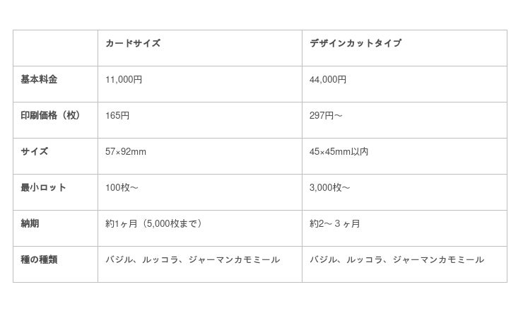 「プラントカード」は、有機農法で育てたハーブの種を日本伝統の手すき和紙に織り込んだものに、メッセージなどをプリントするサービスです。メッセージカードとして使った後に、廃棄するのではなく、土に還すことで、ハーブが発芽し成長します。 捨てずに育てる活動として環境にやさしく、また伝統の手すき和紙職人の雇用を守り、技術継承にも貢献する商品です。