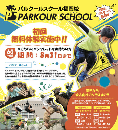 大会パンフレットにはパルクールスクール福岡校「パルクールジム福岡」のキャンペーン広告が掲載される。