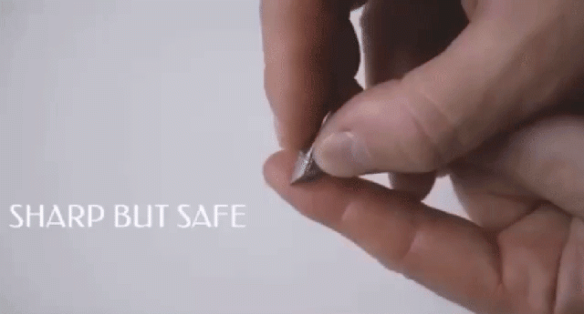 やはり、カッティングツールと聞くと、安全性が気になります。切れ味がいいのは魅力的な一方で、危ないイメージを持つのも事実です。でも、このカッティングツールなら、なんと“SHARP BUT SAFE “(手は切れにくいのに物は簡単に切れる)という理想的なコンセプトで設計しているので安心してお使いいただけます。
