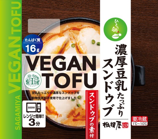 TOKYO-T’s株式会社(本社:品川区/代表取締役:下川 祠左都)は、 相模屋食料株式会社(本社:群馬県前橋市/代表取締役社長:鳥越淳司 以下、相模屋)とコラボレーションし、相模屋人気のシリーズより発売される『VEGAN TOFU 濃厚豆乳たっぷりスンドゥブ』『VEGAN TOFU 生湯葉のつくれる豆乳湯とうふ』を監修致しました。