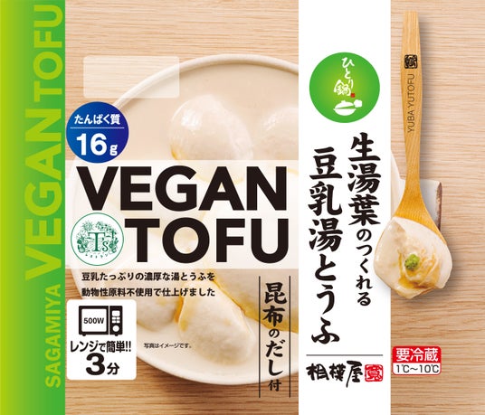 【商品特徴】豆乳たっぷりの濃厚な湯とうふを動物性原料不使用で仕上げた、おいしいVEGANメニュー商品。動物性素材を一切使わずに旨みたっぷりにつくりあげた昆布の旨みがたっぷりの秘伝だしが濃厚でコクのある豆乳と溶け合い、絶妙な美味しさを生み出しています。