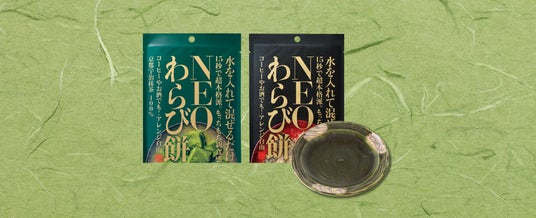NEOわらび餅は水だけで15秒で作れる新感覚のお菓子です。アレンジも自由自在で、さまざまなシーンでお楽しみいただけます。