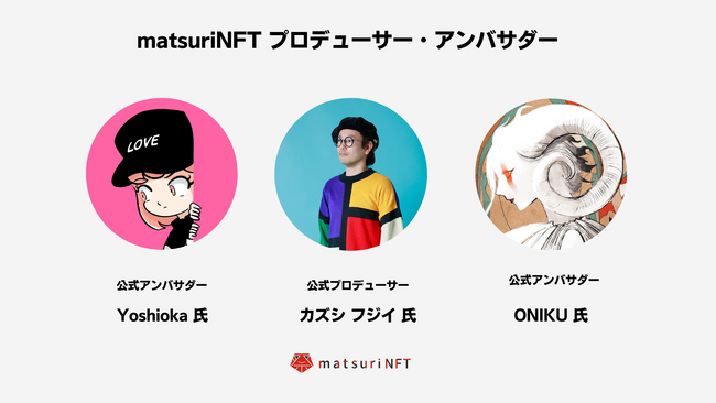 就任したプロデューサー カズシ フジイ氏、アンバサダーであるYoshioka氏、ONIKU氏のクリエイター3名によるコラボレーションNFTの開発も進んでおり、今までにないコラボレーションや共同作品・コレクションなどの企画なども積極的に行って参ります。