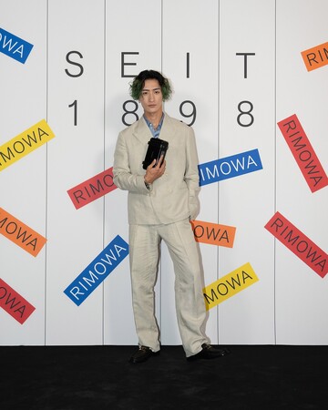 Snow Manの岩本照さんは、ベージュカラーのスーツスタイルにRIMOWAの人気バッグ「パーソナル」を合わせたスタイルで来場。ポリカーボネート製のカジュアルな素材を、あえてスーツスタイルに合わせるという高いファッションセンスを披露しました。