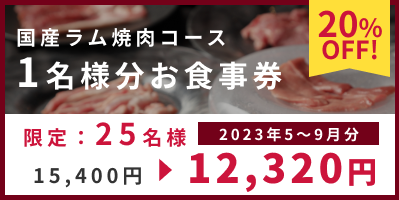 このプロジェクトにご協力いただけた方には、当店自慢のラム焼肉のコース(通常価格15,400円)をご提供させていただきます。