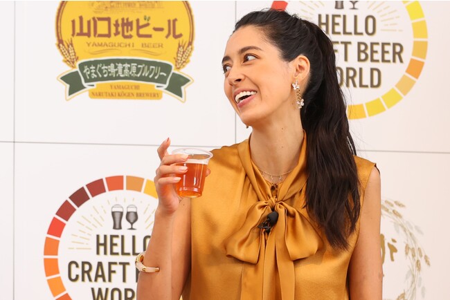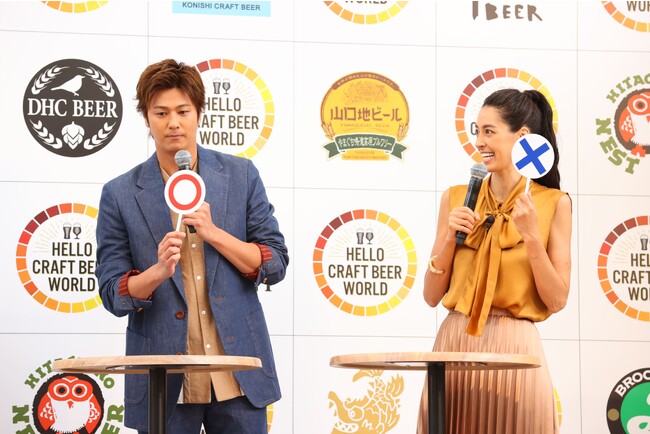 第2部では、お客様第一号として速水もこみちさん、森泉さんが登壇し、MCより『HELLO CRAFT BEER WORLD』の楽しみ方を紹介。説明を受けた森さんは「どんな風にペアリングをするのか気になります、新しい発見が楽しみです」とコメント。続いて、クラフトビールトークではマスターブリュワーの田山が登壇し、「まだ飲んだことがない、楽しみ方がわからないという方が多い。クラフトビールは特別なビールじゃないんです。クラフトビールを知ると豊かな時間を過ごせるので、1人でも多くの方に知ってもらいたい」と『HELLO CRAFT BEER WORLD』開催にかける思いを語りました。