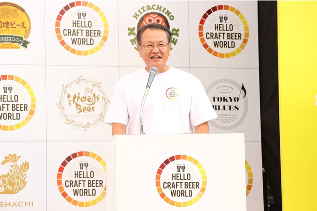 また、 「国内においてクラフトビールを根付かせるためには一社だけでは難しく、一緒にカテゴリーの定着を目指していきたい」と語り、クラフトビールカテゴリー創造を目指し、クラフトオールスター体験会『HELLO CRAFT BEER WORLD』開催を発表。「クラフトビールの世界をご堪能ください!」と開催に込めた思いを発表し、開会を宣言しました。