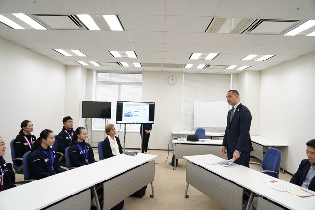 結果報告とともに、アメリカ現地での大会演技をまとめた動画をみていただき、室伏長官は日本代表のシンクロ性の高い演技に「すごい!」とおどろかれた様子でした。