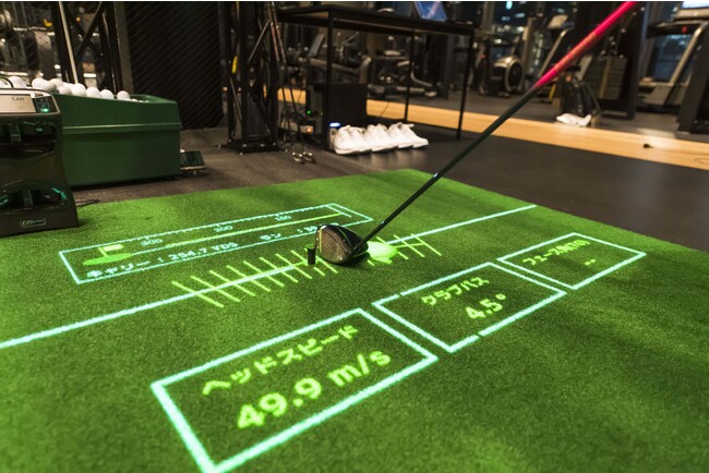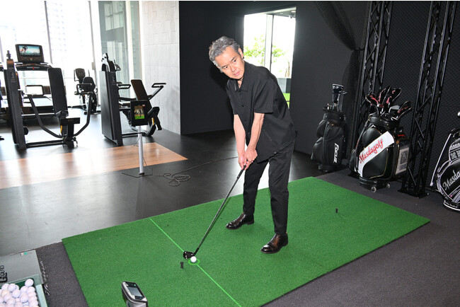本施設のプライベートジムには、フォームの分析・解析ができる最新鋭のゴルフシミュレーター機器が用意されており、イベントでは渡部さんに実際にシミュレーション機器を体験いただきました。