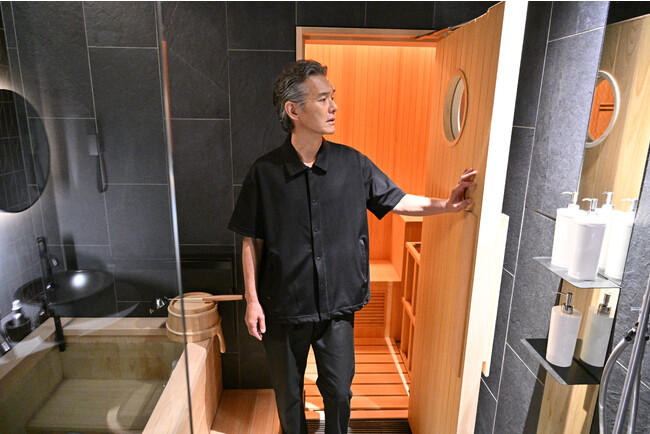 本施設のプライベートサウナを実際に渡部さんにもご覧いただき、毎日行きたいくらいサウナが大好きだという渡部さんは「広々として凄く綺麗。ヒノキの香りも凄く良くて。Bluetoothで音楽も聴けると伺って…。最近のサウナはこんなことになっているんだ!?凄いなと思いました」とサウナ好きならではの着眼点で、見学いただいての感想を語られました。