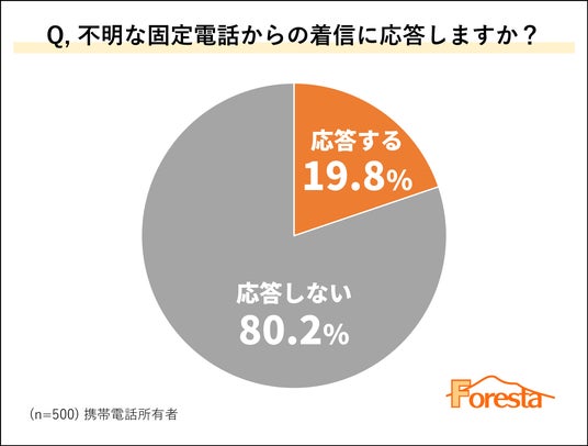 - 不明な固定電話番号からの着信:応答する 19.8%/応答しない 80.2%