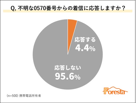- 不明な0570番号からの着信:応答する 4.4%/応答しない 95.6%