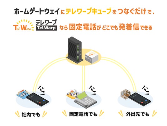 「テレワープ」とは、今の固定電話番号や電話機をそのままに、スマホでも発信・着信できるサービスです。「スマートフォンが固定電話の子機になる」といったほうがイメージがつきやすいかもしれません。