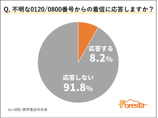 - 不明な0120/0800番号からの着信:応答する 8.2%/応答しない 91.8%
