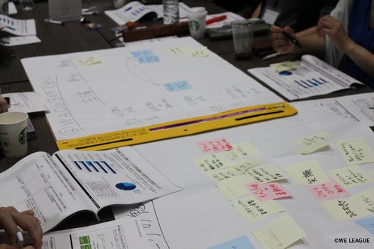 第2部では、WE ACTION DAYにおける具体的な活動についてチームごとに分かれてアイディエーション(アイデア出し)を行いました。それぞれの強みや地域性を生かし、「多様性・ジェンダー」「教育・健康」「地域貢献」の3つのテーマにわかれ、ソーシャルインパクトパートナーであるKPMGコンサルティング様によるファシリテートのもと意見を交わしました。