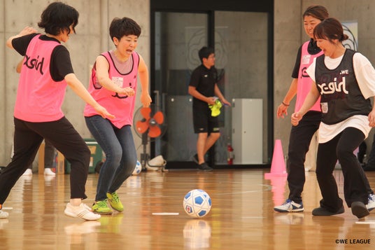このウォーキングフットボールの振り返りの時間では、楽しむ姿勢の共有や、参加の幅を広げる工夫がWEリーグ クレド(行動規範)にある“みんなが主人公”を体現することにつながるという気付きを得る機会となりました。